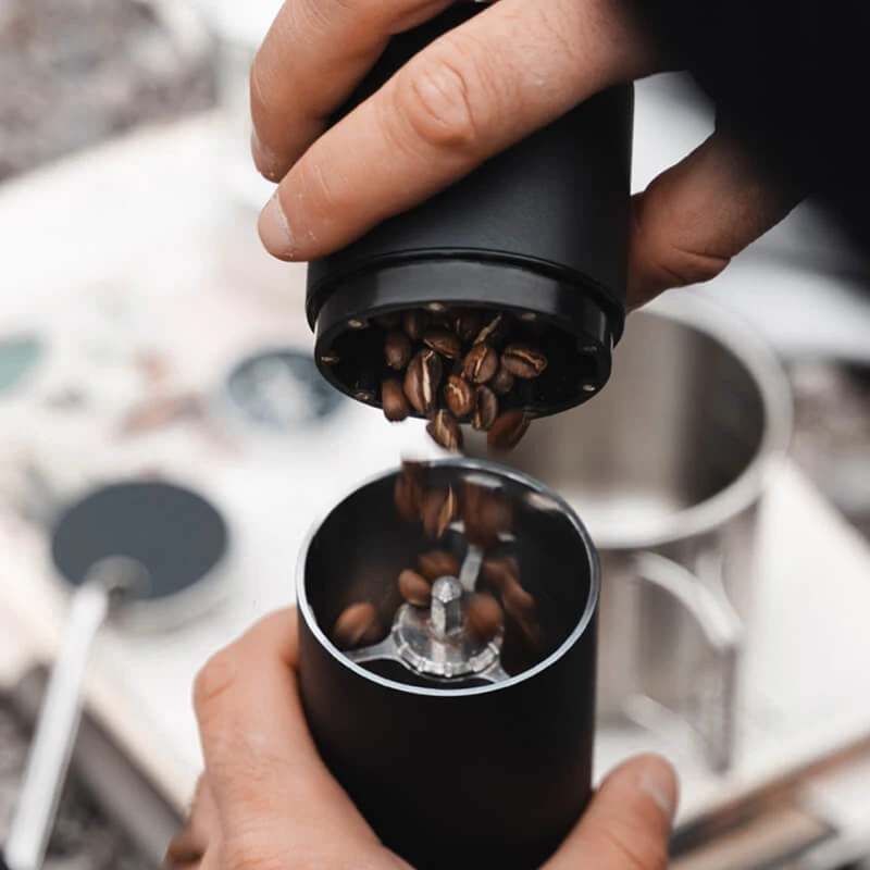 Das Gehäuse der ARCO Handmühle von GOAT Story besteht aus einer Aluminiumlegierung, welche auch in der Raumfahrt genutzt wird. Dies macht sie besonders robust und langlebig. Im Inneren ist ein 47 mm Kegelmahlwerk verbaut, welches zuverlässig homogenes Mahlgut hervorbringt. Der Mahlgrad kann über das große und übersichtliche Einstellrad gewählt werden. Die verfügbaren Mahlgrade decken alle Zubereitungsmöglichkeiten von sehr fein für Ibrik/ Cezve bis gröberen French Press Rezepten ab.