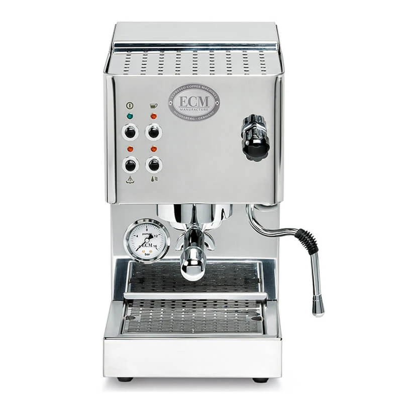 Der schmal gebaute Einkreiser von ECM erfreut durch eine extrem kurze Aufheizphase von 5-7 Minuten. Dank des leicht erreichbaren Expansionsventils gestaltet sich die individuelle Einstellung des Brühdrucks einfach. Das Design ist modern, das Gehäuse aus poliertem Edelstahl handgearbeitet. Ein Pumpendruckmanometer und eine bewegliche Dampflanze runden die qualitätsvolle Ausstattung der Casa V von ECM ab.