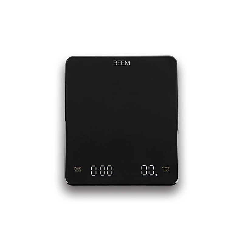 Ein LED-Display ermöglicht eine einfache intuitive Bedienung der Kaffeewaage von BEEM. Gleichzeitig schaltet sich dieses nach der Benutzung automatisch aus. Es können beim Messen verschiedene Maßeinheiten gewählt werden, beispielsweise Gramm, Unze und Milliliter. Die Waage wird per wieder aufladbarer Lithium-Ionen-Akku betrieben, ein USB-Ladekabel wird mitgeliefert. In puncto Optik kann die Waage mit einem zeitlosen Design und schwarzer Farbe überzeugen. Die Sensor-Touch-Bedienung ist modern und lässt das Auswiegen zum Kinderspiel werden.
