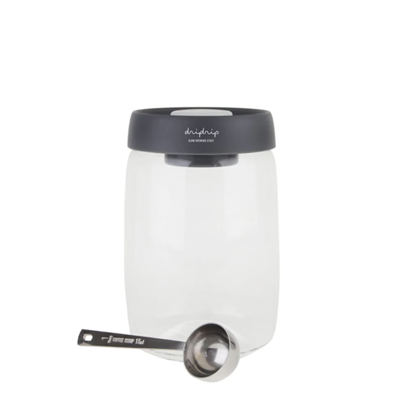 Die Dripbox von dripdrip ist die perfekte Aufbewahrungsmöglichkeit für hochwertige Kaffeebohnen. Die Vakuum-Kaffeedose besteht aus Borosilikatglas und schützt die Bohnen vor äußeren Einflüssen, wie Oxidation, Feuchtigkeit und Fremdgerüchen. Einmal versiegelt, hält das Vakuum bis zu zwei Wochen an, vorausgesetzt Sie können überhaupt so lange auf Ihre Bohnen verzichten. Die Dripbox fasst 1,2 l, was etwa 500g Bohnen entspricht, ist 17 cm Hoch und weist einen Durchmesser von 10,9 cm auf.