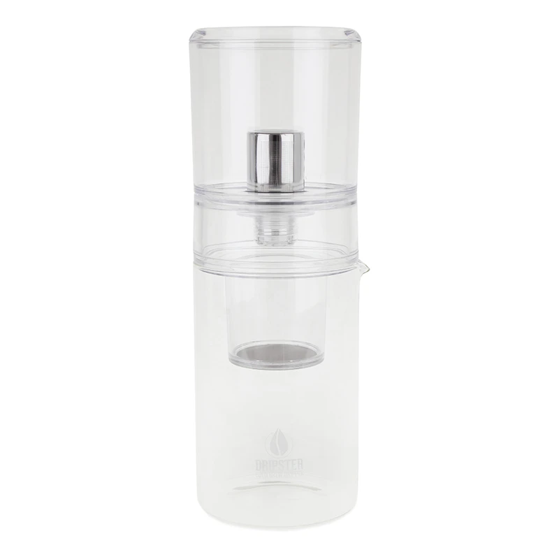 Der neue 2-in-1 Cold Brew Dripster vereint sowohl das Cold Drip-, als auch das Full Immersion Verfahren in einem praktischen Produkt. Beim Cold Drip Verfahren wird eiskaltes Wasser Tropfen für Tropfen auf den gemahlenen Kaffee gegeben. Mit Hilfe des Ventils des Dripsters kann die optimale Geschwindigkeit von einem Tropfen je Sekunde mit Leichtigkeit erreicht und gehalten werden. Der Brühvorgang dauert zwischen 2 und 6 Stunden, je nach gewählter Durchlaufgeschwindigkeit und Wassermenge.