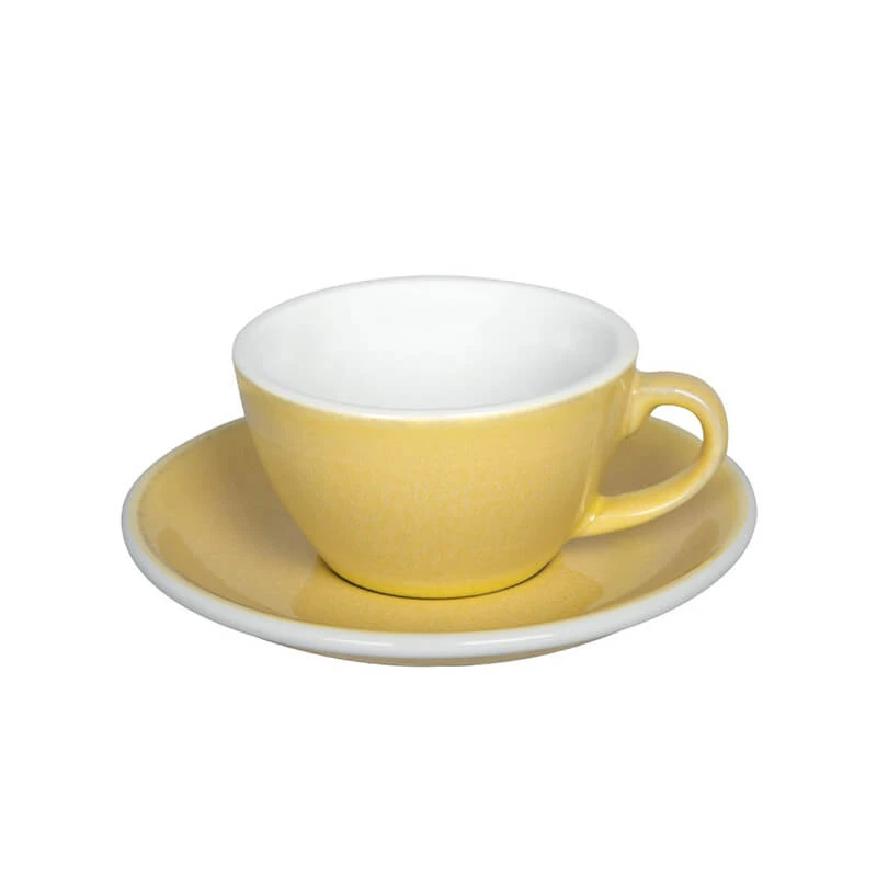 Die formschönen Flat-White-Tassen des Qualitäsherstellers Loveramics sind nicht nur für das Auge ein Highlight, sondern überzeugen vor allem durch Qualität. Die Tassen sind besonders dickwandig, weshalb der Flat White lange die Temperatur hält. Hergestellt wurden die Tassen nach Standards der Specialty Coffee Association (SCA), die Form der Tasse macht das Eingießen der Milch noch einfacher und ist somit ideal für Latte-Art geeignet. Die Flat-White-Tassen werden bei 1300°C gebrannt.