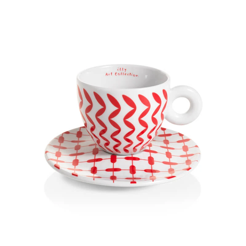 Das limitierte Set aus zwei Cappuccino Tassen der illy Art Collection wurde von Mona Hatoum entworfen. Die Künstlerin wurde in Beirut geboren und ist nach Ausbruch des Bürgerkrieges nach London gezogen. In ihrer Karriere hat sie sowohl in Perfomance Kunst als auch in Installationen und Skulpturen kritische Themen aufgegriffen und widersprüchliche Gefühle wie Abneigung und Begierde dargestellt.