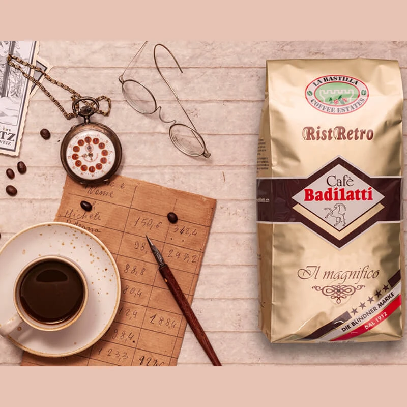 Zum Jubiläum der Kaffeerösterei Café Badilatti hat die Rösterei den Jubiläumskaffee Rist Retro herausgebracht. Die hochwertigen Kaffeebohnen wurden auf den renommierten Kaffeeplantagen „La Bastilla“ in Nicaragua angebaut. Besondern mild wurden die Bohnen geröstet und haben wenig Säure. Der Geschmack ist nussig und hat Nuancen von Malz. Der Beutel, in dem die Bohnen verpackt werden, ist biologisch abbaubar. Rist Retro eignet sich insbesondere für Cafè Creme und Filterzubereitung.