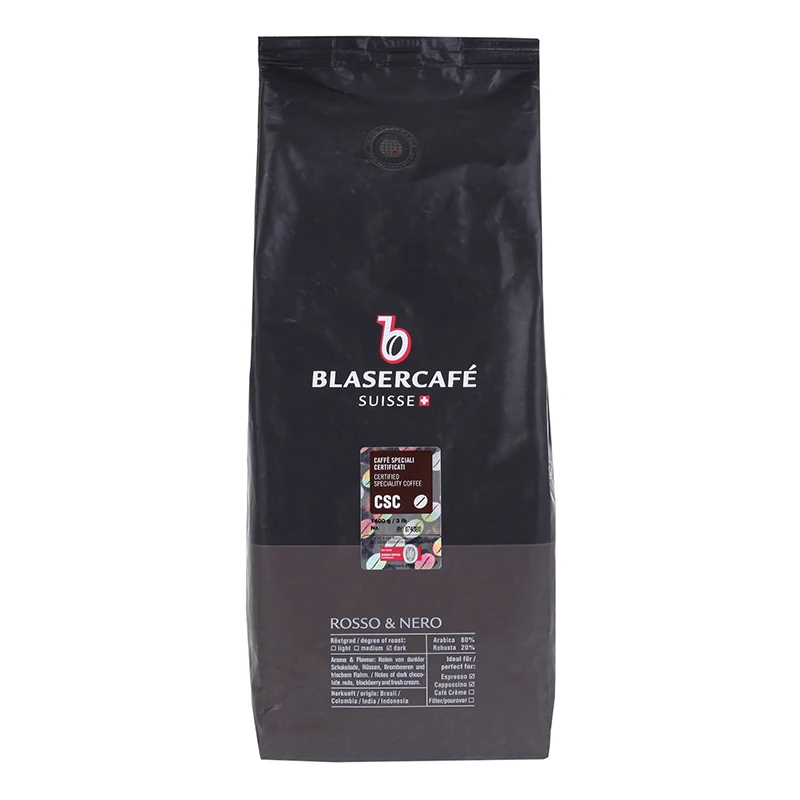 Der Rosso e Nero von Blasercafé ist ein kräftiger Espresso aus 80% Arabica Bohnen und 20% Robusta Bohnen. Die Bohnen stammen aus Brasilien, Kolumbien, Indien und Indonesien. Geschmacklich überzeugt der Espresso durch seine ausbalancierten Fruchtnoten von Brombeeren und Apfel. Zudem geben dunkle Schokolade, Nüsse und Karamell tolle ergänzende Aromen.