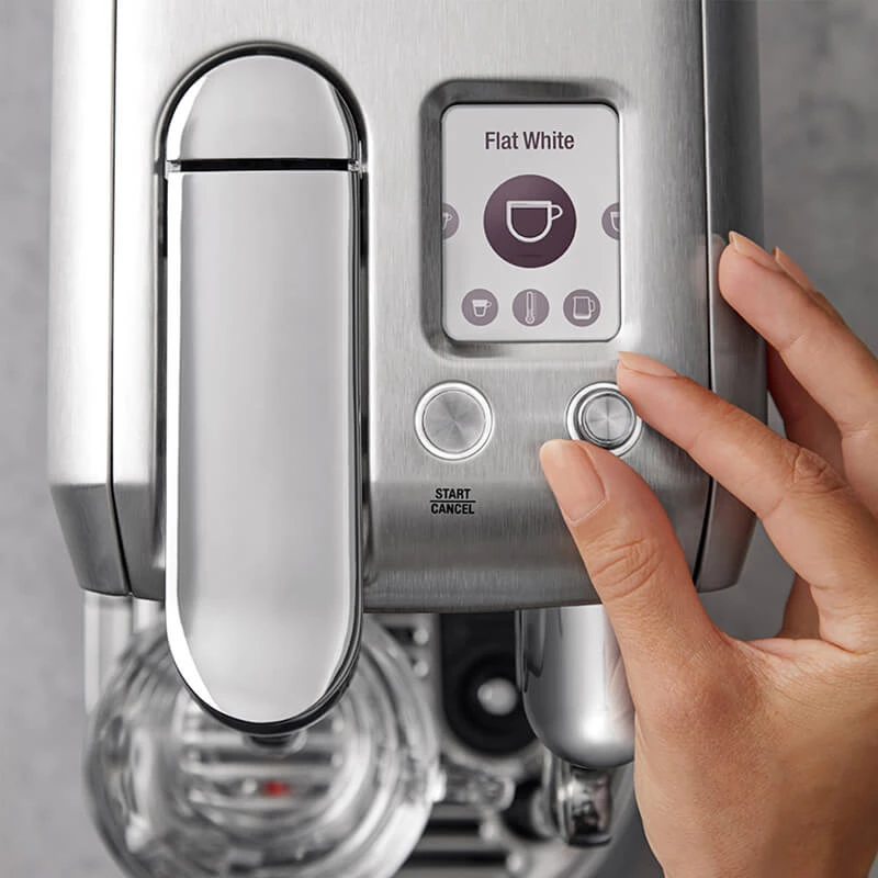 Mit Hilfe des Drehrädchens wird das TFT-Display bedient und bietet so eine schnelle und detaillierte Übersicht über die Einstellungs- und Zubereitungsmöglichkeiten. Unter anderem kann die Milchschaumkonsistenz und -temperatur angepasst werden.