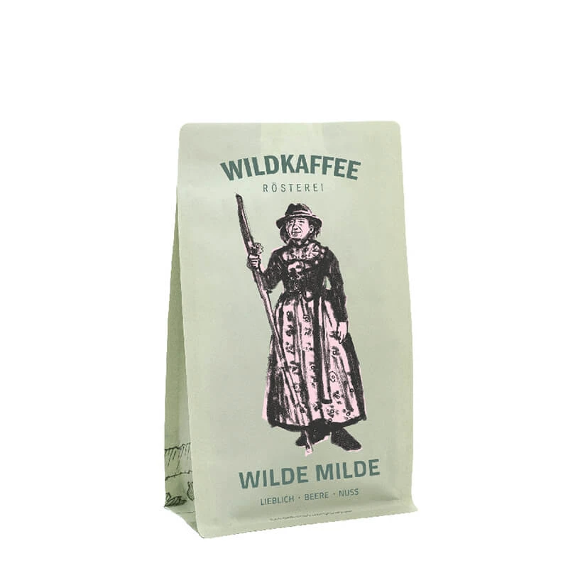 Der Blend Wilde Milde von der Rösterei Wildkaffee besteht zu 100 % aus Arabica Bohnen. Um genauer zu sein handelt es sich um einen Mix aus vier verschiedenen Varietäten – Yellow Catuai, Typica, Catuai und Bourbon. Zu 40 % stammen die Bohnen aus Brasilien und zu je 30 % aus El Salvador und Burundi. Geschmacklich zeichnen den Blend Noten von Nuss und Beere aus. In modernster Trommelröstung wurden die Bohnen hell bis mittel, sehr schonend, geröstet und behalten so ihre ganzen Aromen.