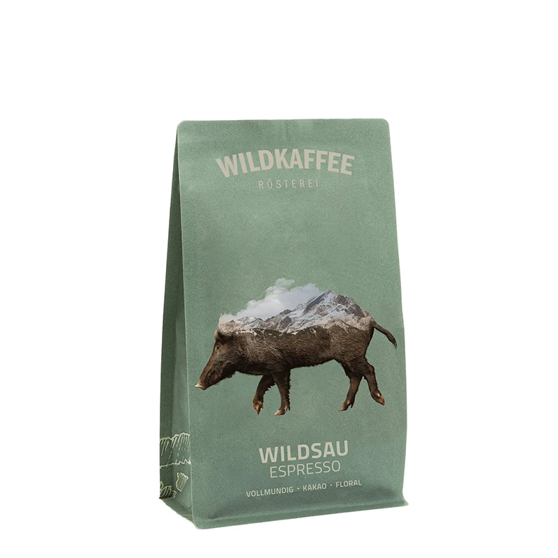 Der Blend Wildsau Espresso besteht zu 100% Arabica Bohnen. Die Rohbohnen stammen aus Brasilien, Guatemala und Äthiopien. Sehr mild ist der Wildsau ein sehr klassischer Espresso. Geschmacklich zeichnet den Blend Noten von Früchten und Kakao aus.